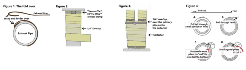 3. Zacznij od złożenia końca folii wydechowej o 3/4 ”~ 1”. Upewnij się, że włożyłeś fold pod koniecWrap wydechui umieść na rurze. To zmniejsza strzępienie na końcu opakowania. (Rysunek 1)